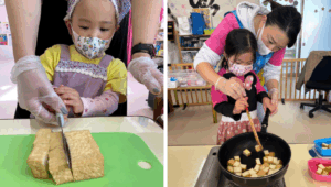 On Friday, we had our cooking class. In honour of Japanese Food Day on November 24th, our kids made deep-fried tofu with vegetable sauce. This procedure involved a lot of cutting of various vegetables, and measuring and mixing ingredients. The end result was delicious meal to take home and share with their families.