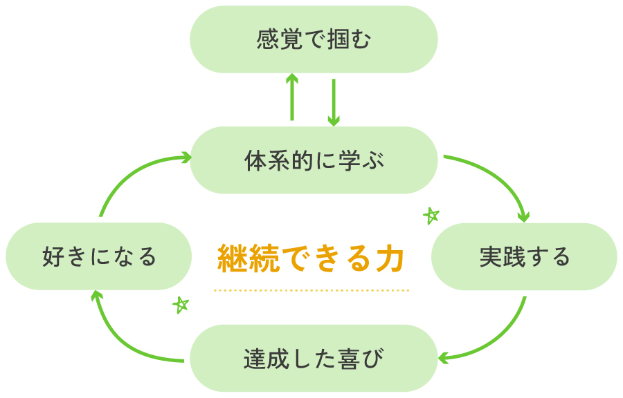 文字が読めるようになると、「もっと色んな本が読みたい」になるし、文字が書けるようになると、お友達にお手紙が書きたくなったりするものです。そこから得られる達成感が継続のエネルギーになります。