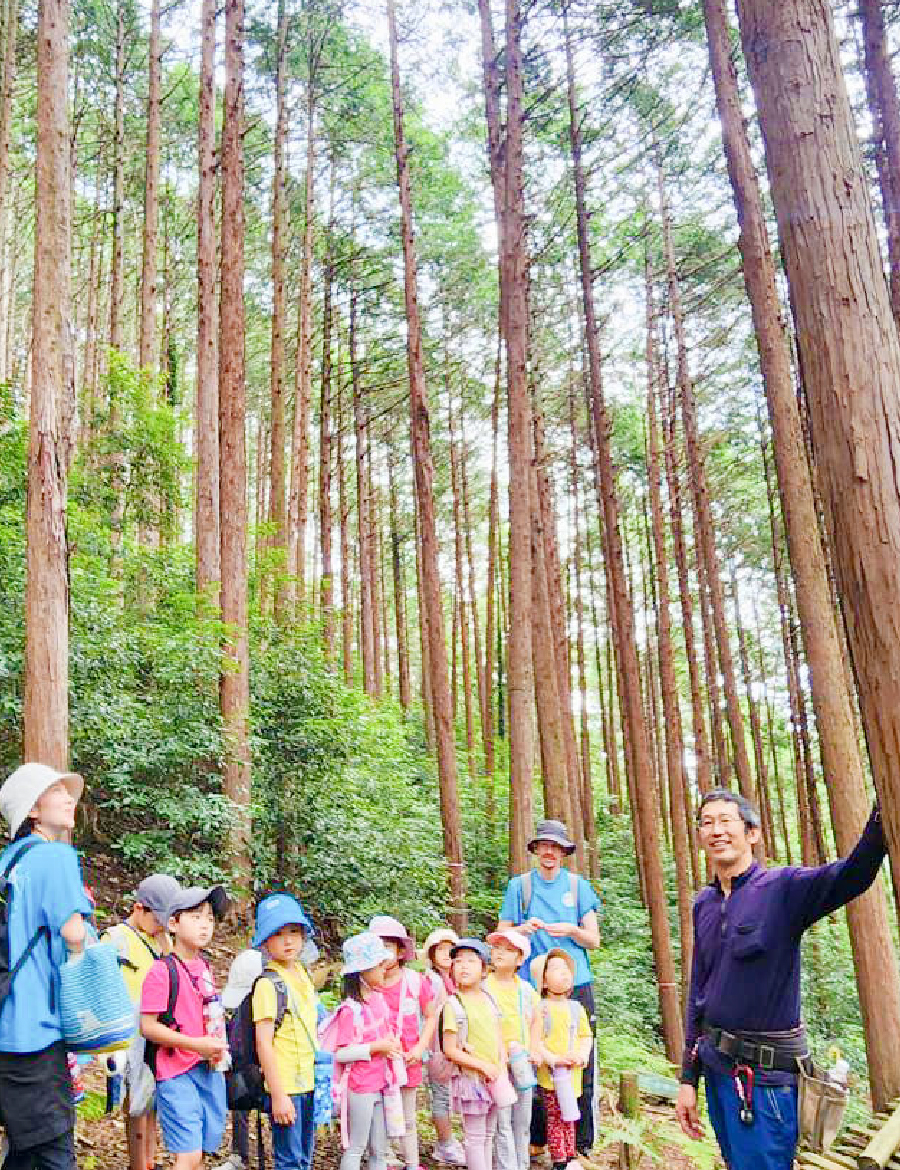 給食の食材を提供してくださっている地元の農家さんの畑にお邪魔して、畑仕事や、収穫を手伝う課外授業があります。普段食べているものを生産している方のお話を聞くことで、残さずに食べること、食材を大切にする心を育てます。八王子の恩片山にも山の手入れのお手伝いをさせてもらいに、ずーやんに会いに行ったりもします。