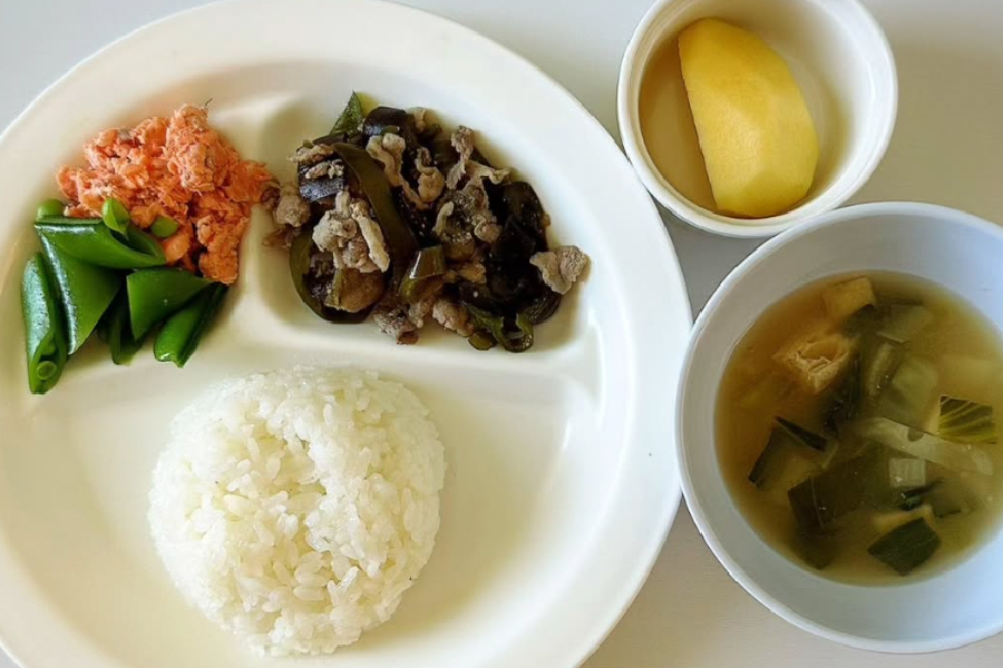 献立は和食中心で、卵・牛乳・小麦粉は一切使わないグルテンフリーのメニューになっています。栄養士さん調理師さんが栄養バランスを考えて作ってくれた献立になっています。