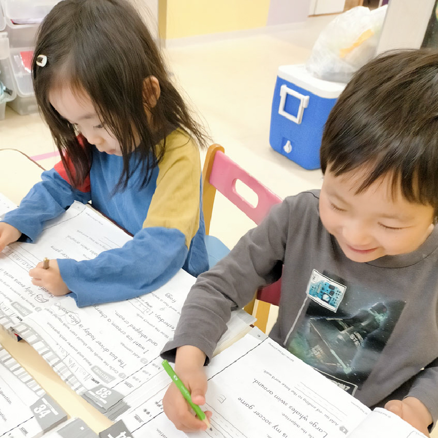 まずは、プリスクールで歌やゲームを通じ、楽しみながらPhonics(フォニックス) を学びます。フォニックスが身につくと、次に単語が読めるようになり、やがて文章が読めるようになる、というように、着実に成長していきます。